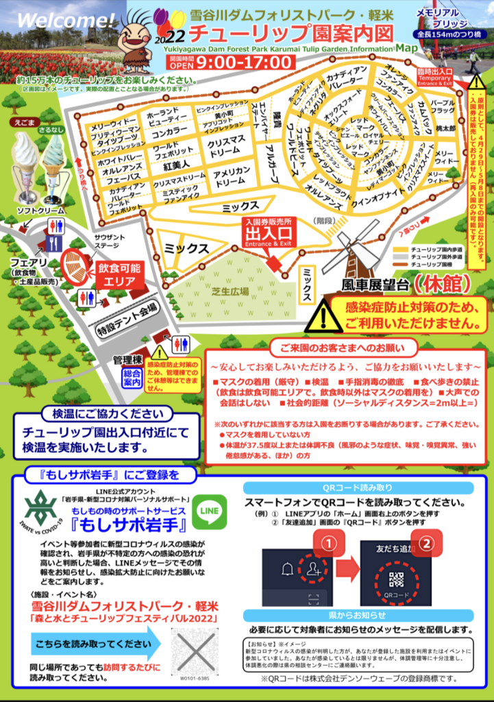 雪谷川ダムフォリストパーク・軽米 2022年チューリップ園案内図